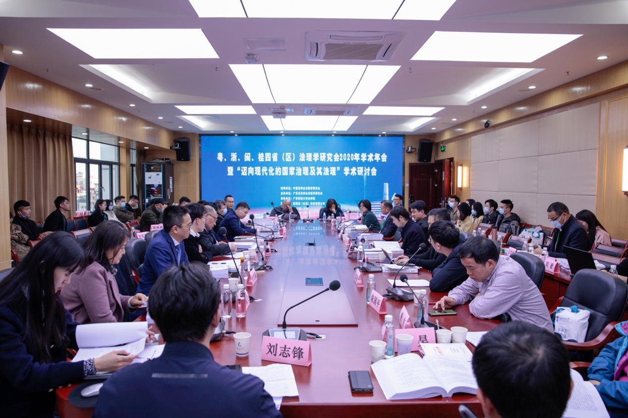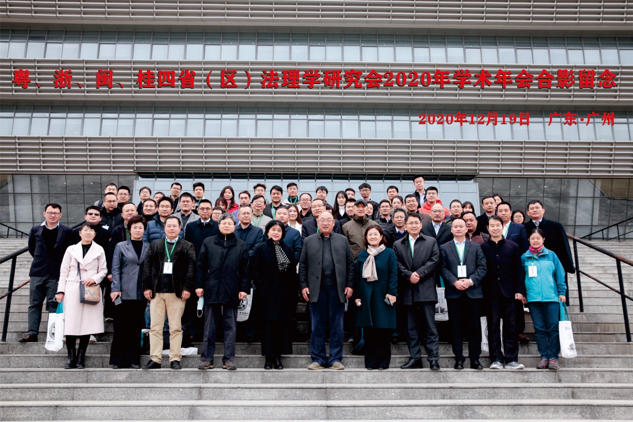 2020年12月19日,由广东省法学会法理学研究会主办、广东财经大学法学院承办的粤、浙、闽、桂四省(区)法理学研究会2020年学术年会暨“迈向现代化的国家治理及其法理”学术研讨会在广州顺利举行。来自四省高校以及科研机构的100多名法理学专家学者、法律实务工作者和法理学研究生参会。我院院长宋方青教授、副院长郭春镇教授、郑金雄教授、姜孝贤助理教授、程庆栋助理教授与厦门大学法学理论硕博士共赴广州参加此次学术盛会。